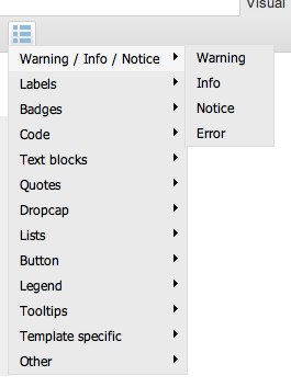 To simplify shortcodes use available in themes based on GavernWP framework, a button for theme’s typography has been implemented which is available in a posts editor: