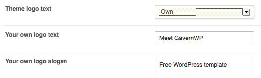 Theme logo text option specifies whether main logo text and the signature below it will be taken from WordPress settings (from WordPress settings) or will be specified by a user (Own). In the case of choosing the second option, two additional fields to fill in will appear: