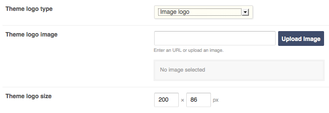 The majority of parameters are connected with a Theme logo type. The first step in a logo configuration is to choose a logo type; there are the following logo types available: