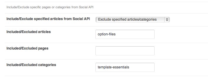 The last group of options allows to specify where they will be displayed – thanks to Include/Exclude specified articles from Social API option, it is possible to switch off Social API completely or switch on/off this functionality only for chosen posts, subpages and categories.